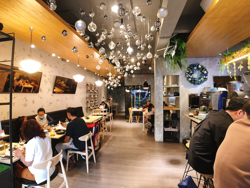 店門口藍色木桌椅座位非常熱門,等看到後面食物的照片你就知道為什麼了,食物擺在藍色桌子上,怎麼拍怎麼好看!我們去的時間點是平日中午,原本訂位時店家要給我們包廂的位子,後來我們還特地打電話去換成門口的半露天座位,為的就是這海藍色的木質桌椅,它同時也是FB和IG上的熱門打卡點。