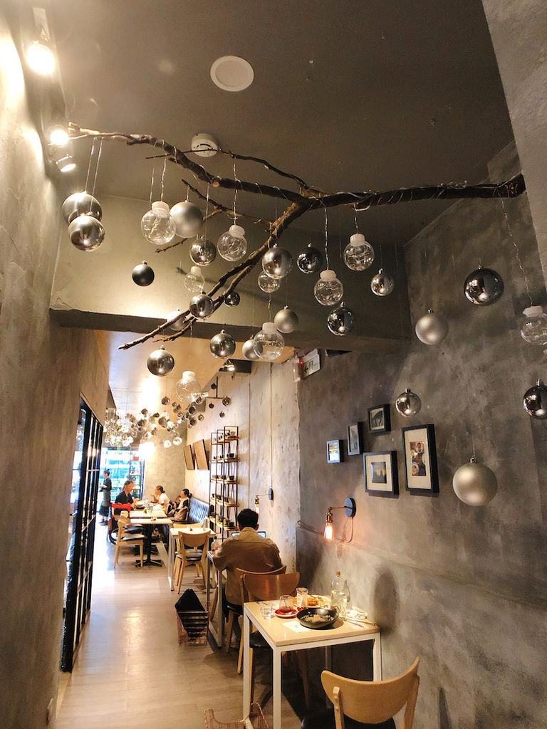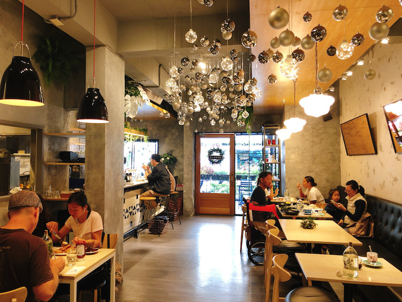像現在因為聖誕節才剛過,The Antipodean的天花板就應景的裝點了銀白聖誕球,除此之外,它也曾佈置過雲朵或是乾燥花藝等等。不誇張,我看了好幾個部落格的介紹照片,很少拍到室內裝飾是相同的,甚至連牆面璧紙都不同,像The Antipodean這樣用心營造氛圍的咖啡館真的很少見!
