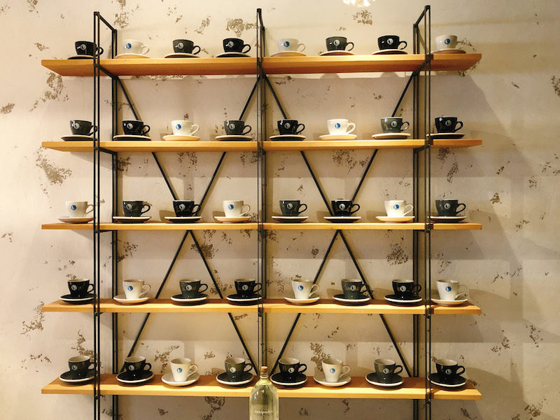 門口層架上陳列著各種咖啡用具,同時也有販售自家烘焙的咖啡豆。