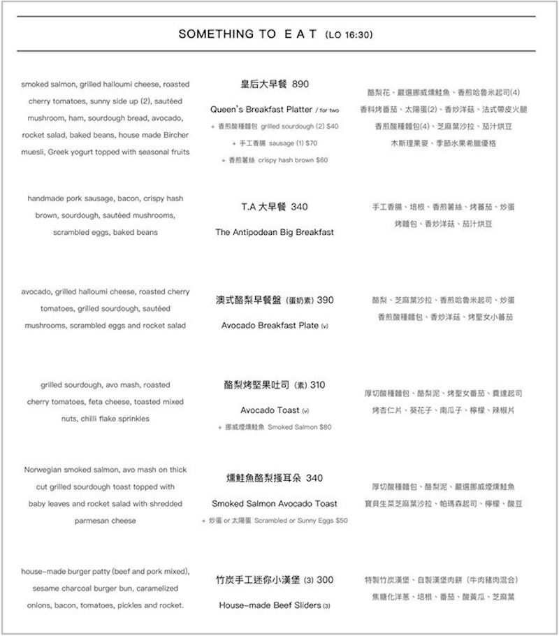 The Antipodean在餐點和用餐環境上,都成功地複制了澳洲咖啡館的精神,雖然餐點的選擇不算多,價格中偏高,卻都很有特色同時兼具健康。對於吃膩美式早午餐的人而言,不妨前來試試澳洲風味的早午餐,或是選個微風徐徐的午後,來這裡點一杯咖啡,靜靜的享受鬧中取靜的時光。